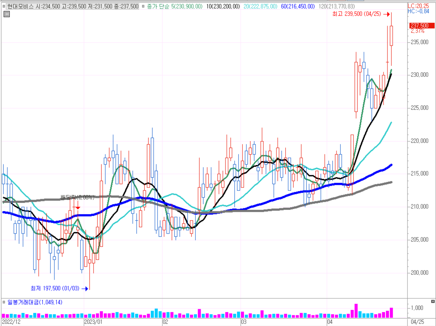 | [매매일지]현대모비스 관련주, 종목분석, 주가분석, 미래전망, 매출액, 영업이익(재무제표), 차트분석 - 23.04.27(목) (0) | 2023.04.27 |