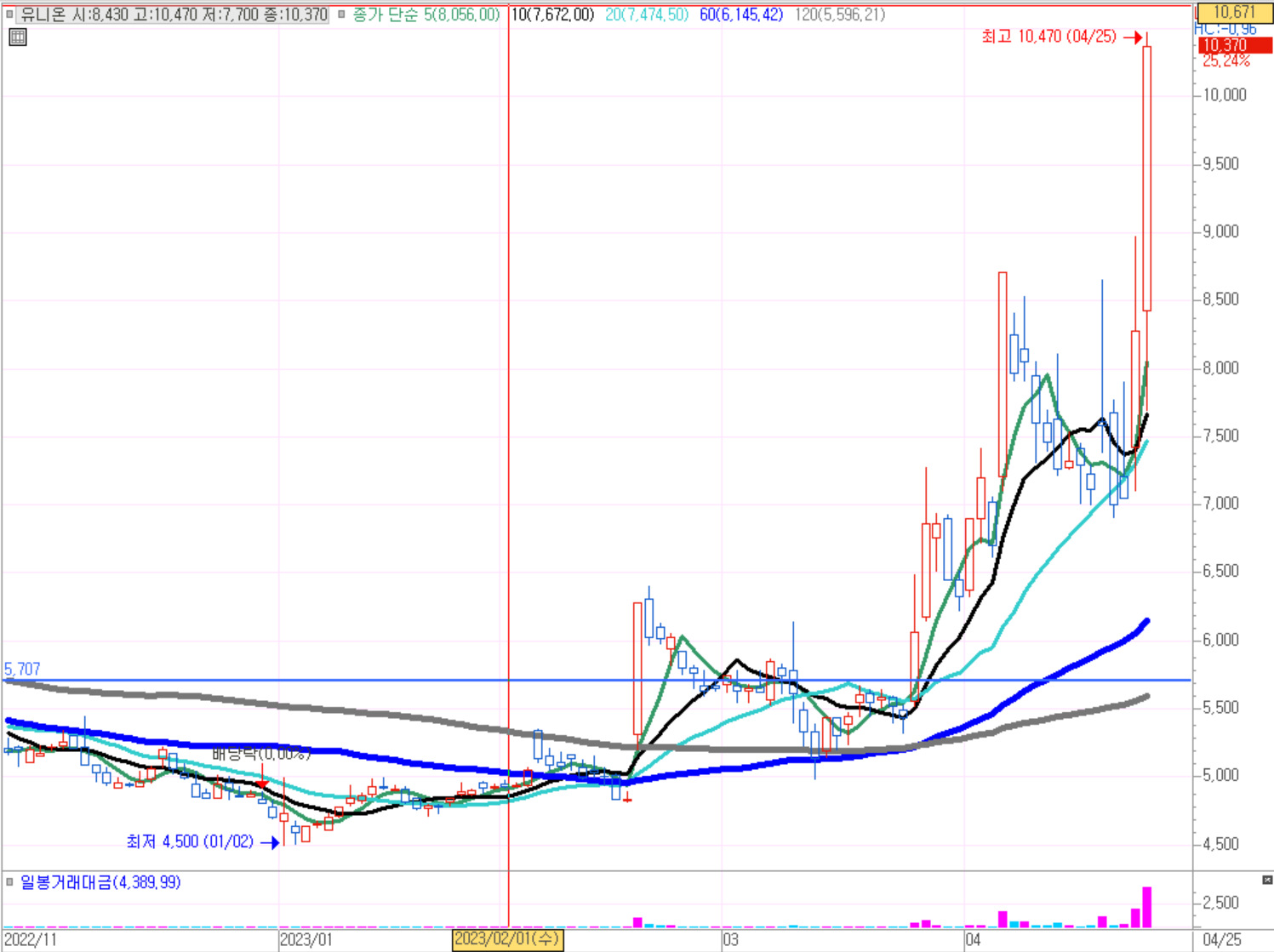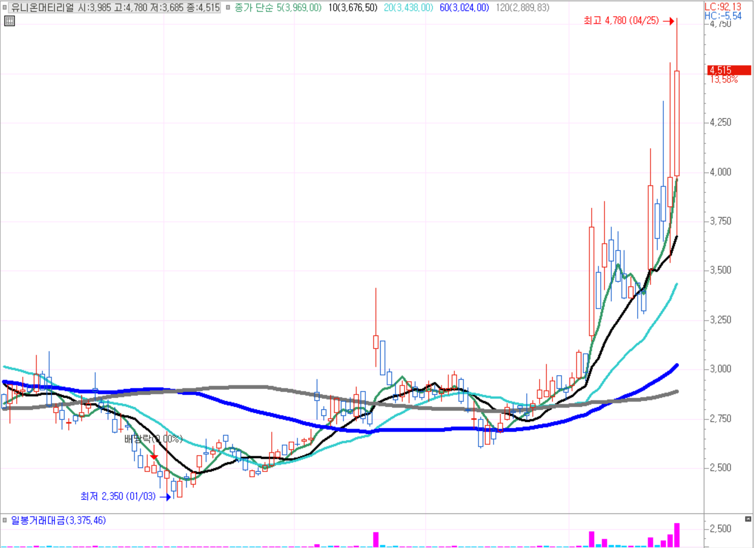 해당 유니온/유니온머티리얼 은 총 8000억원 가량의 거래대금이 터진 강한 종목으로 확인