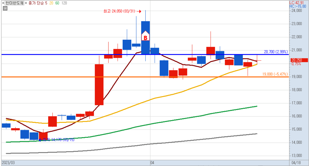 지속적으로 19,000원 ~ 20,700원 부근에서