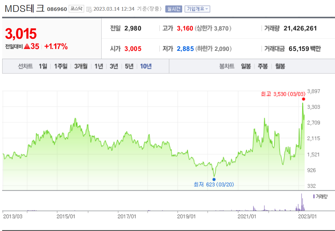 개인적으로 MDS테크는 역사적 신고가 3,310원 강하게 돌파하였으며,
