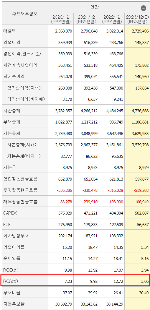 20년 21년 22년 ROE와 ROA가
